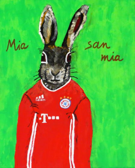 Männerwelten TierportraitsMia san mia Mit schnellen Flitzern in der Mannschaft gewinnt man Titel. Acryl auf Leinwand, 40x50cm | 70€ Fotodruck/Postkarte, 10×15 cm, mit Umschlag | 3,50€